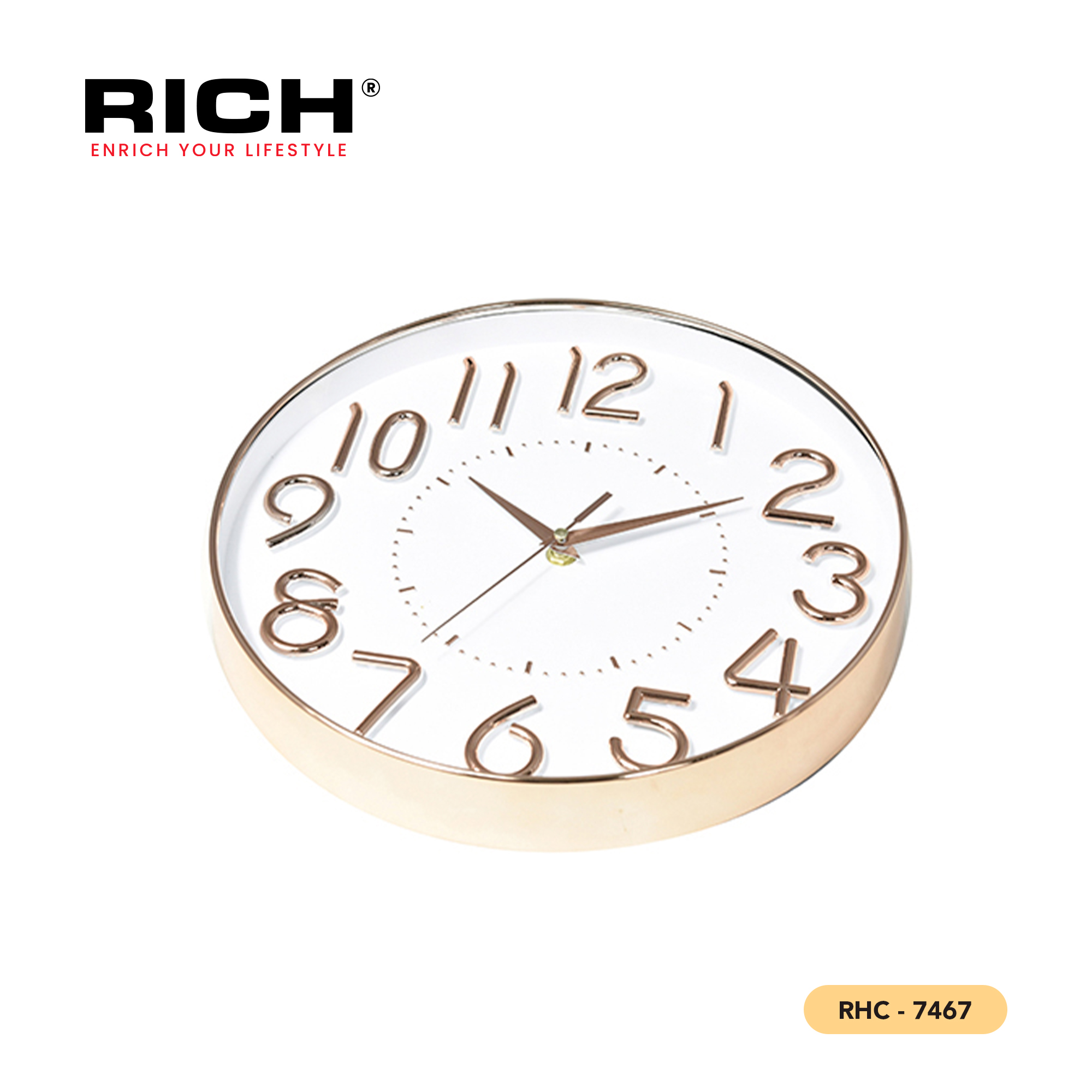 The RHC-7467 Wall Clock delivers a quiet, understated beauty and rock-solid reliable performance. With its clear numerals and precise, accurate timekeeping, it is the perfect choice for spaces that value simplicity and clarity without compromising on quality or style.