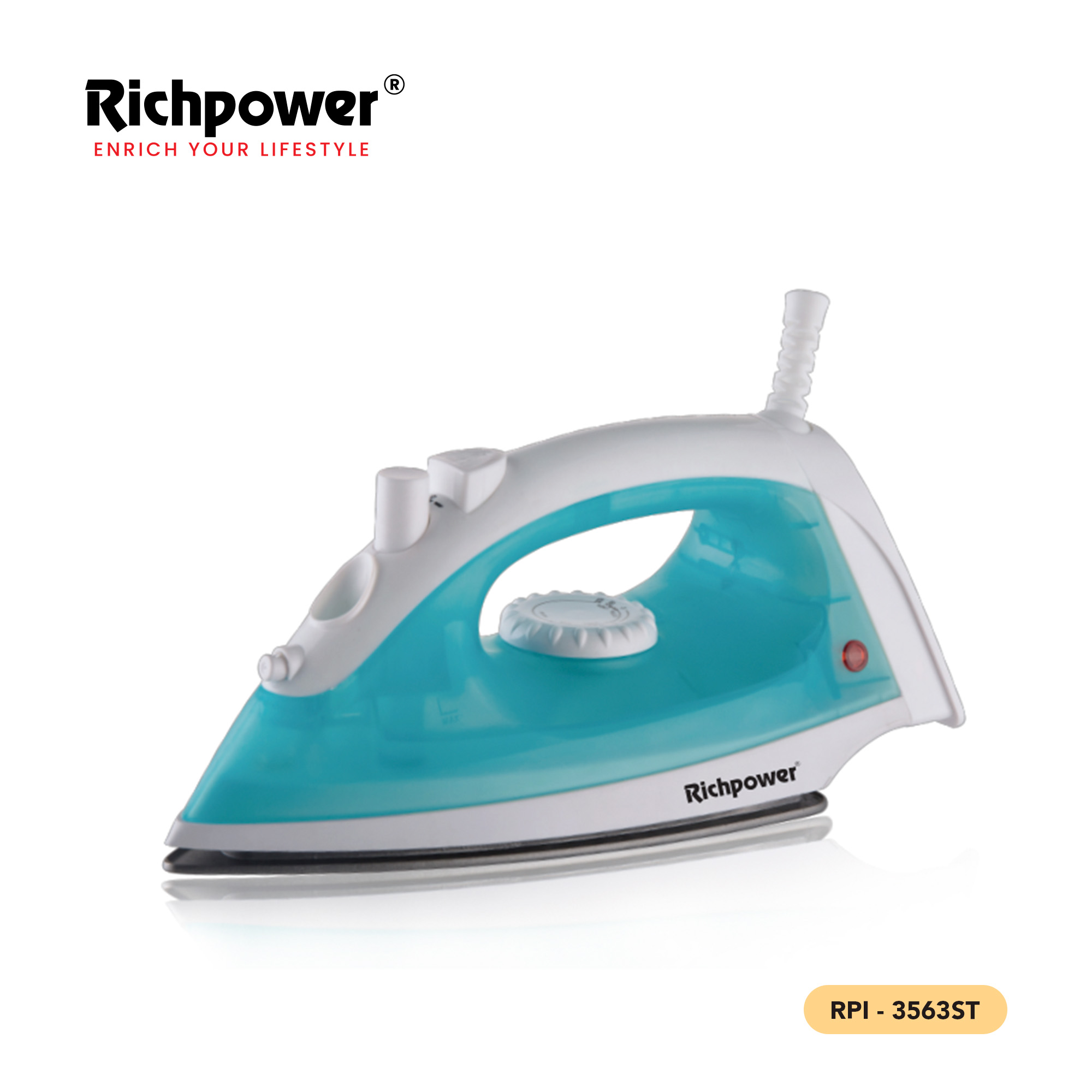 The Richpower RPI-3563 delivers consistent steam distribution to tackle tough creases. Its ergonomic design and high durability make it an ideal appliance for quality ironing at home.