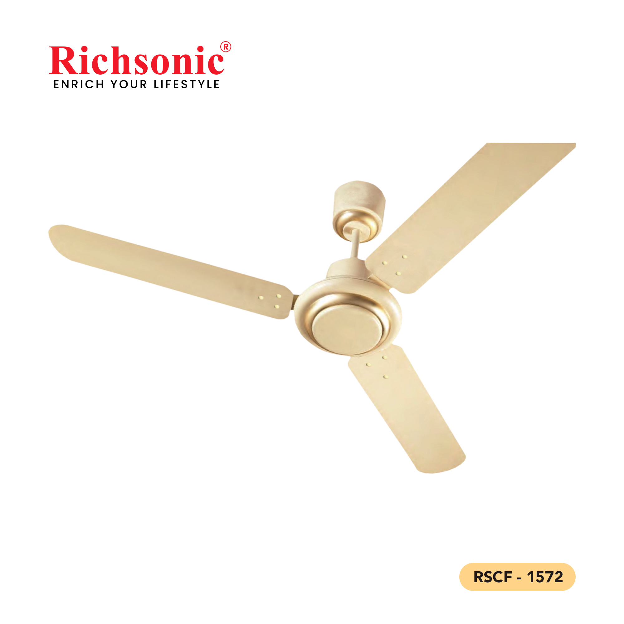 The Richsonic RSCF-1572 Ceiling Fan combines elegance, efficiency, and quiet operation. Its dynamically designed blades ensure smooth airflow and balanced performance across spacious rooms.