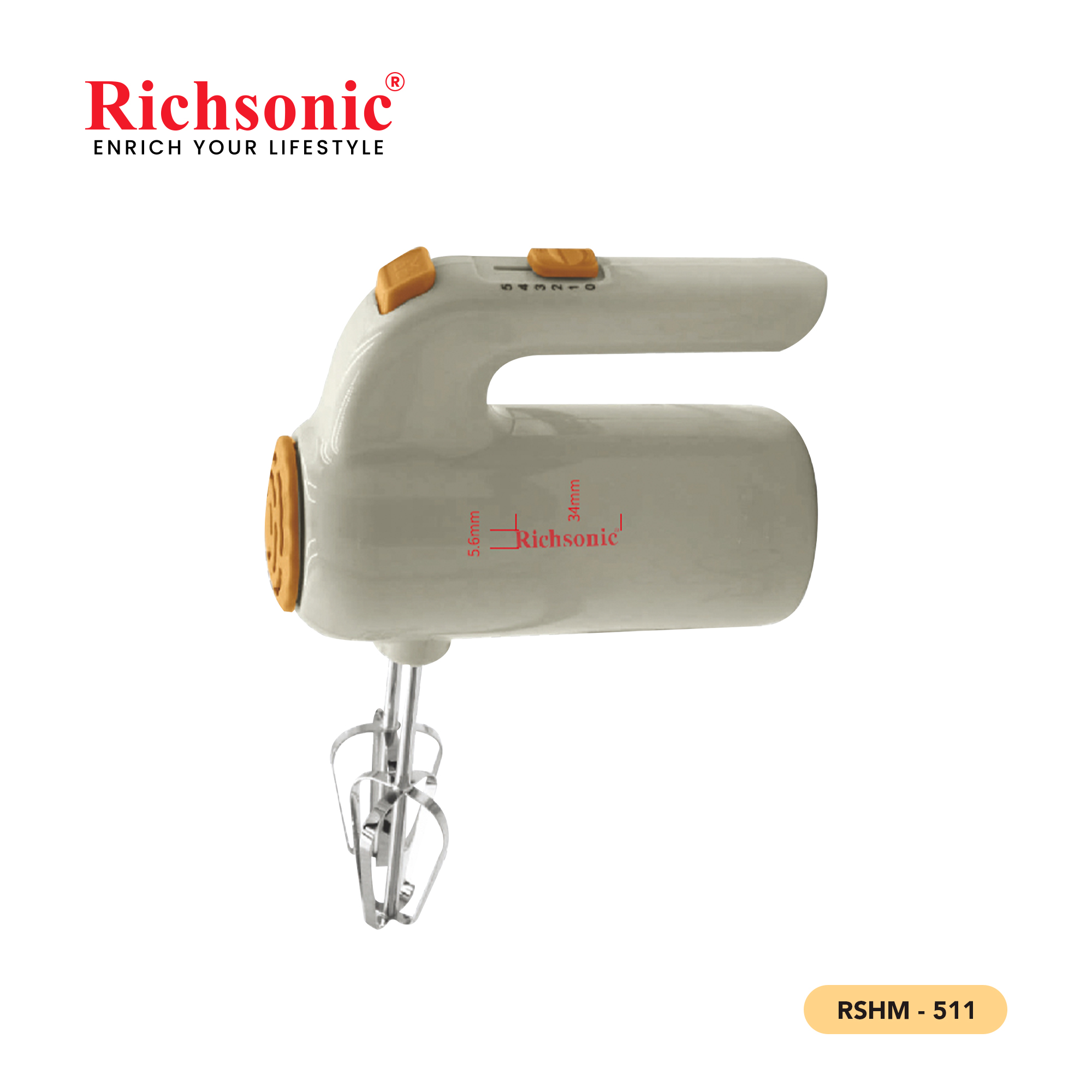 The Richsonic RSHM-511 is a compact, efficient hand mixer designed for everyday baking and mixing tasks, offering excellent control and user friendly operation.