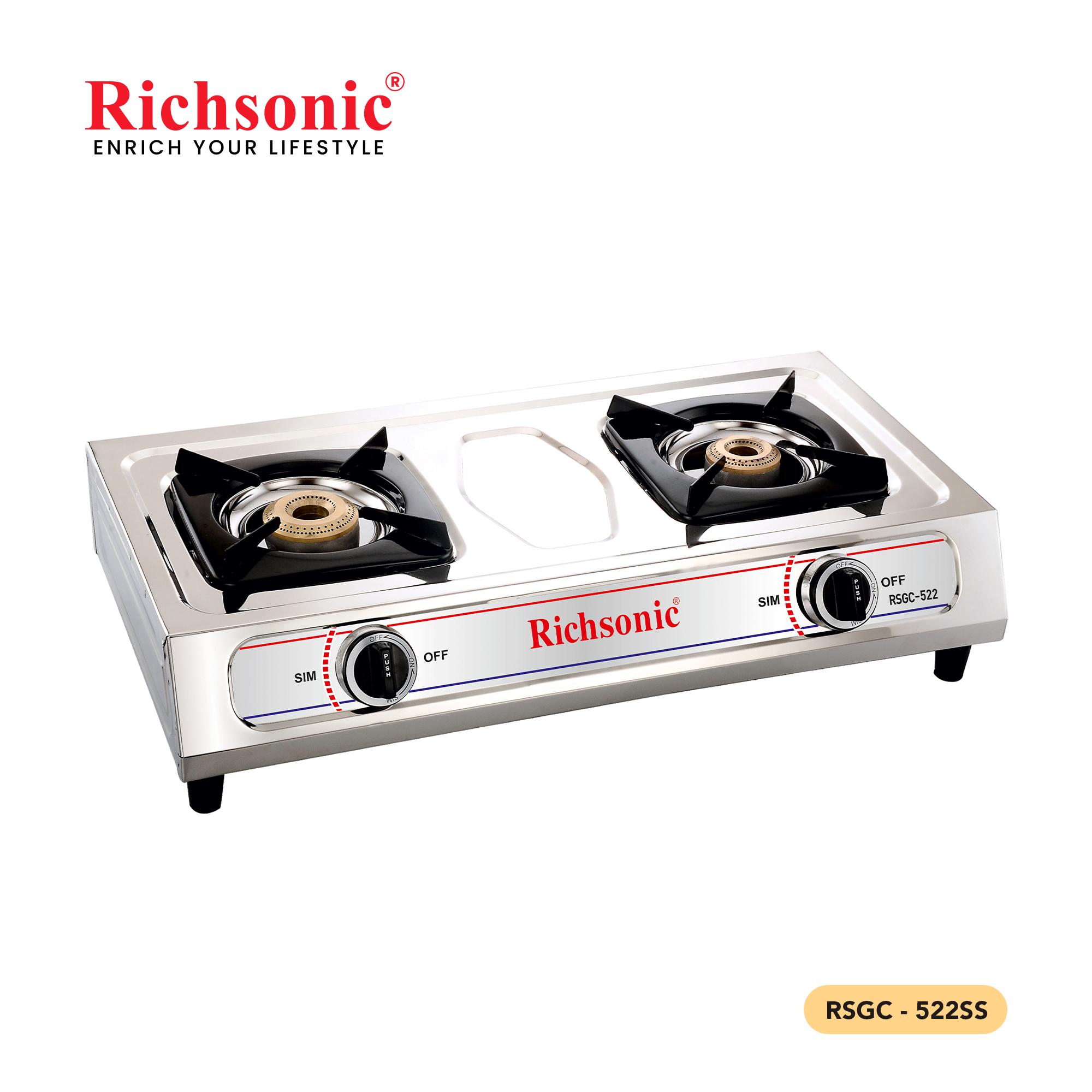Richsonic brand RSGC-522SS is a durable Indian-style stainless steel gas cooker built for efficient and long-lasting cooking in Sri Lanka.