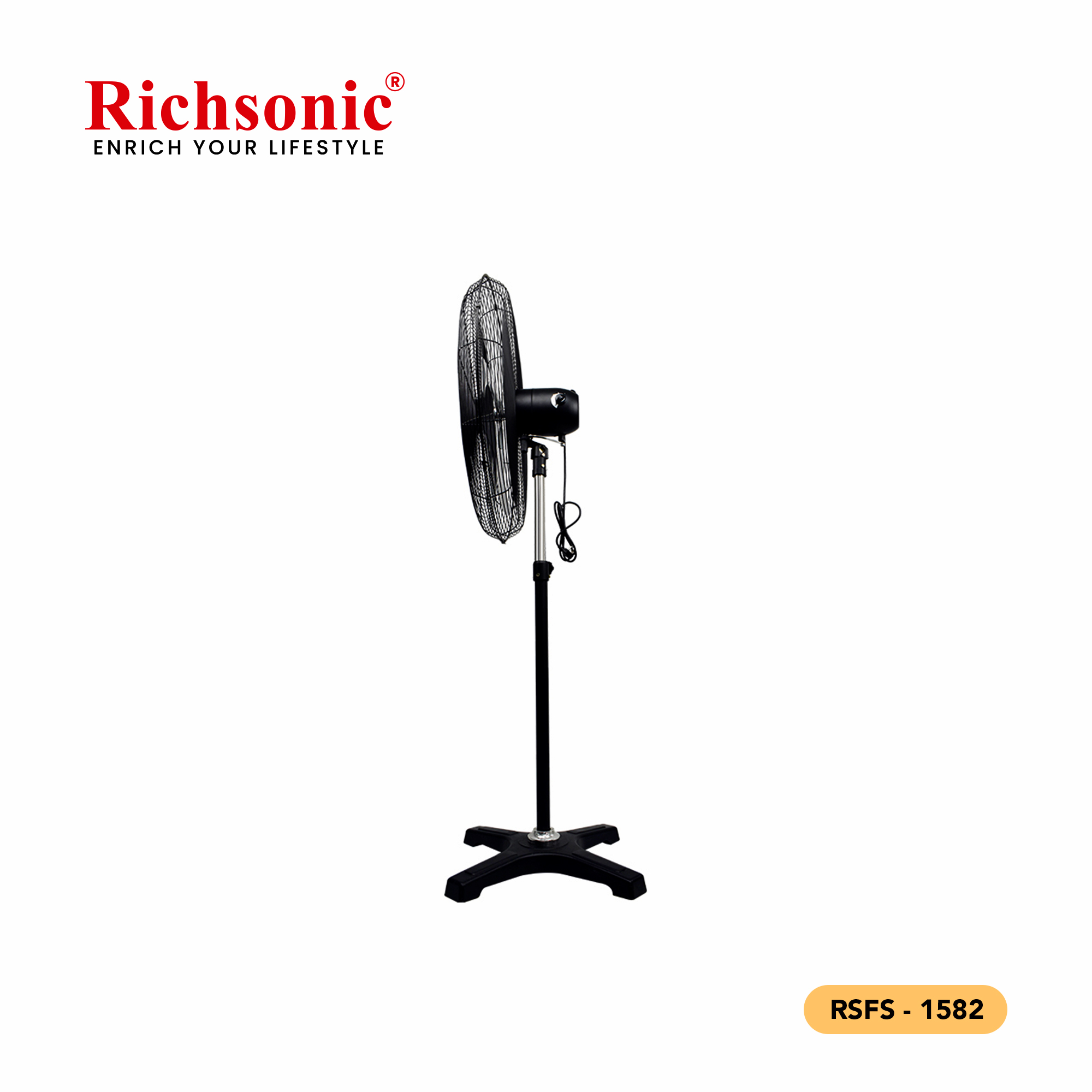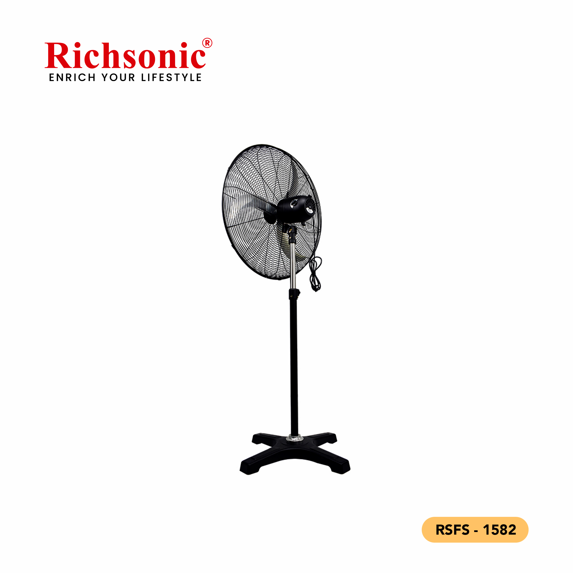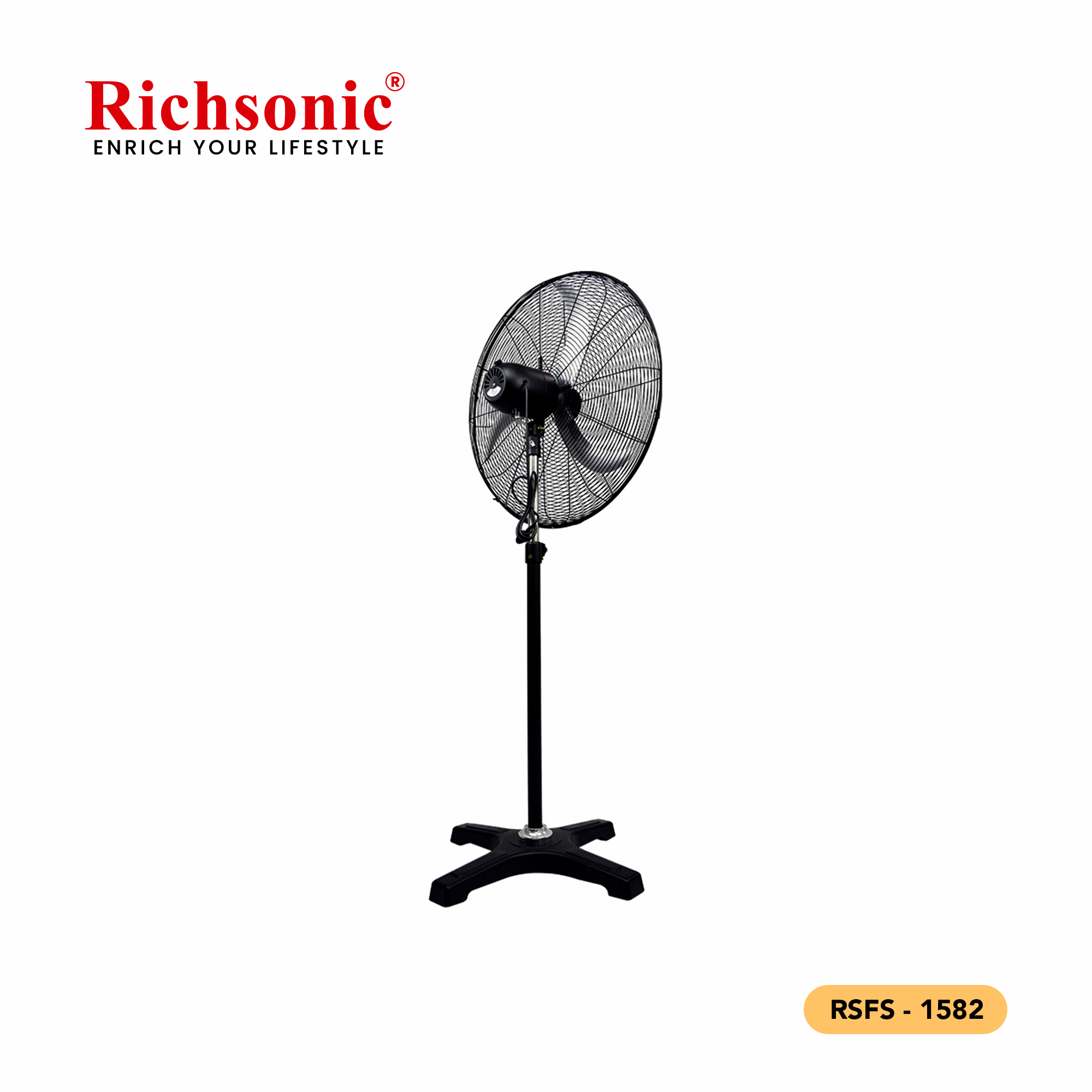 The RSFS-1582 Industrial Stand Fan is engineered for powerful, continuous airflow in demanding environments. With a robust frame and durable motor, it ensures long-lasting operation and effective cooling.