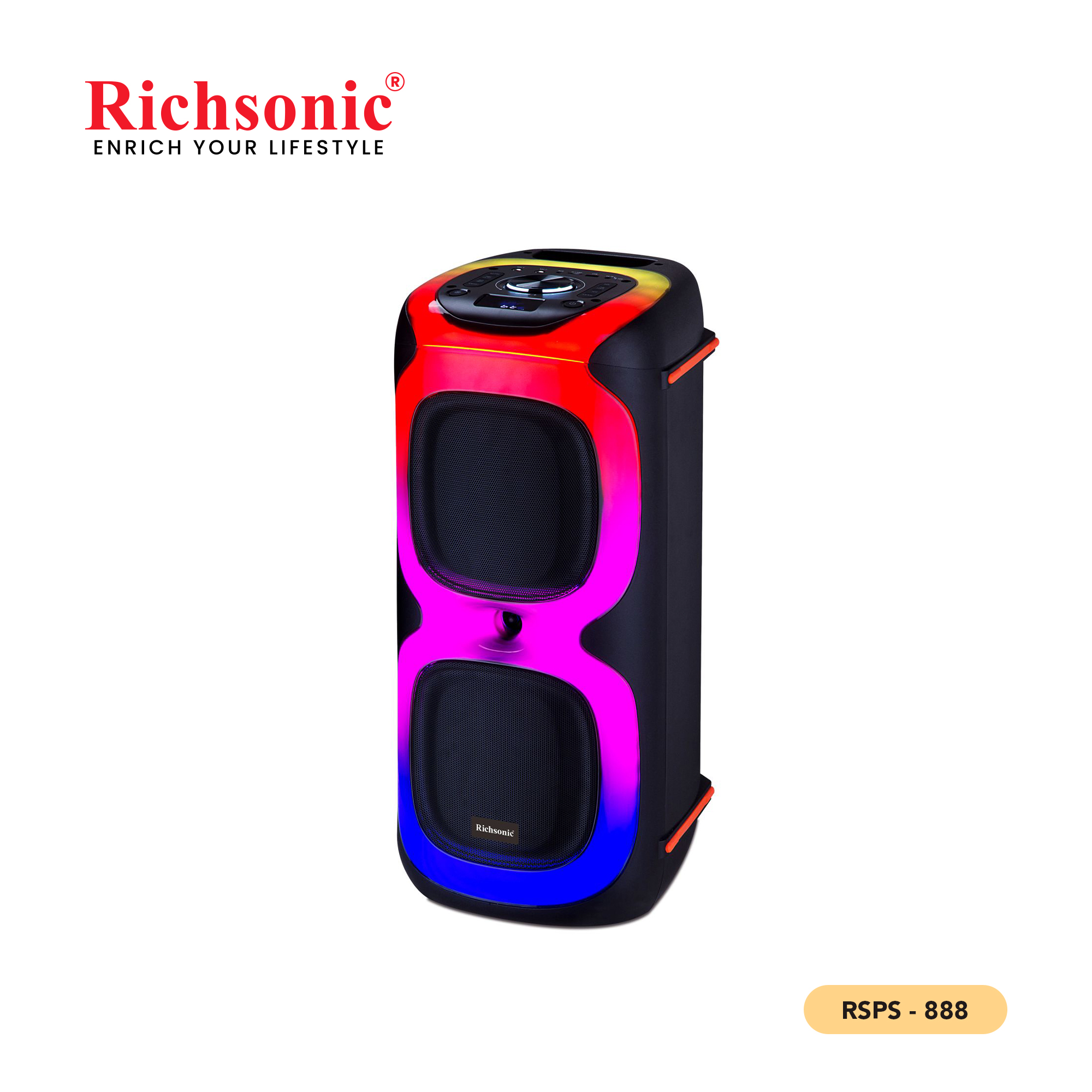 The RSPS-888 by Richsonic is a bold, bass heavy party speaker designed to deliver vibrant sound and unbeatable energy.