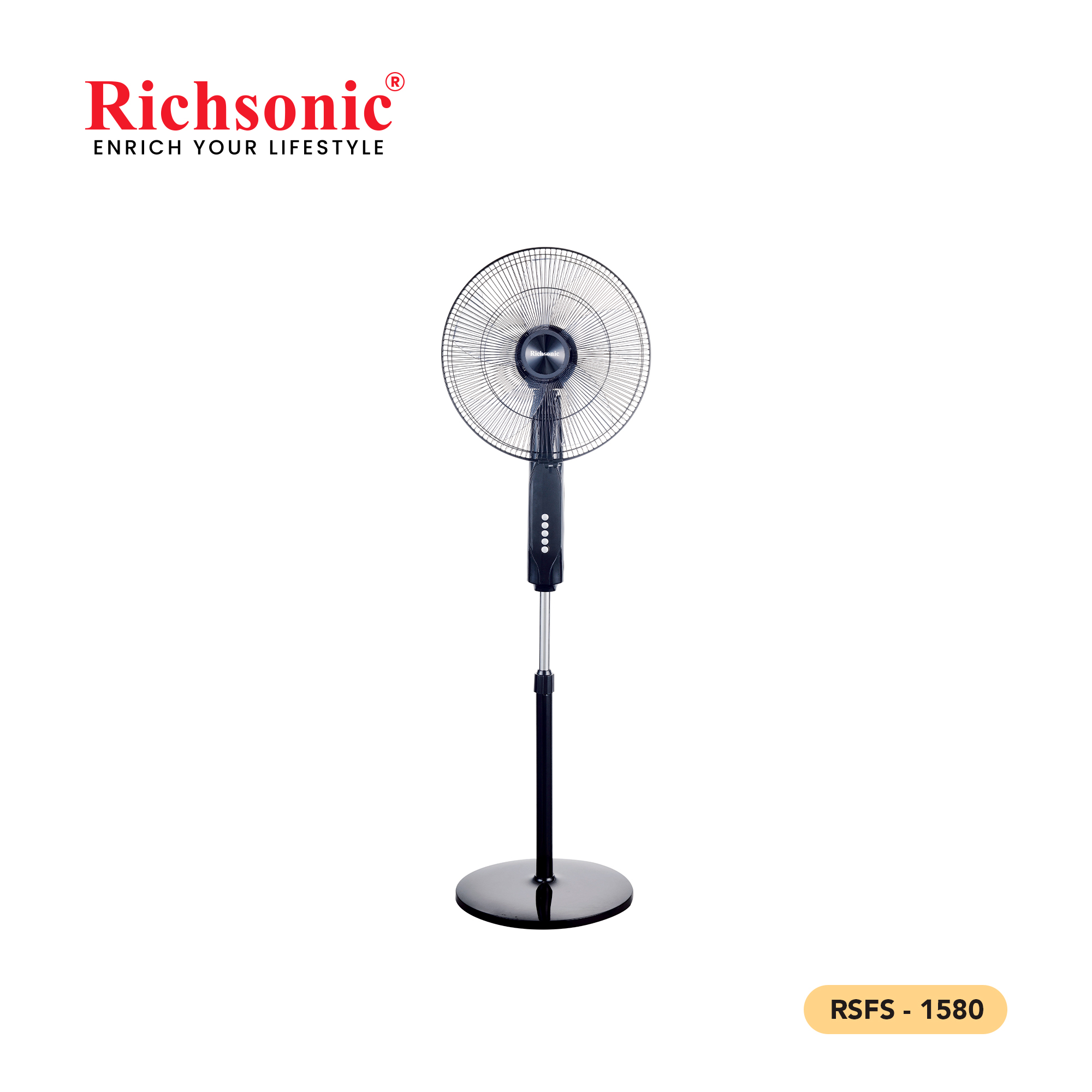 The Ricshonic RSFS-1580R 16” Stand Fan redefines convenience with remote-control operation. Enjoy multiple speed options, timer settings, and a strong cooling performance — all with a simple click.
