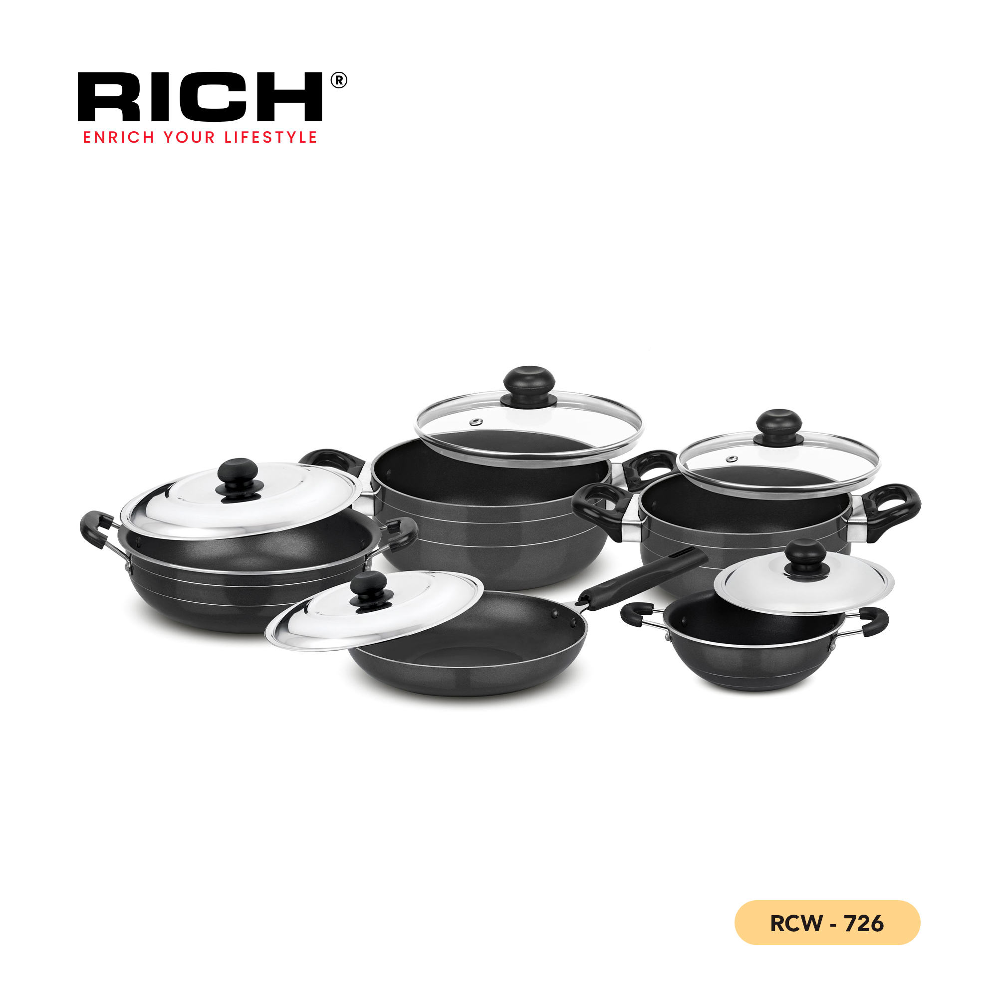 The RCW 726-10 Cookware Set with Nylon Spoon delivers excellent heat distribution and durability. Its design ensures easy cleaning and convenient use. This set is a part of durable kitchen appliances where Sri Lankan households trust, providing both value and style.